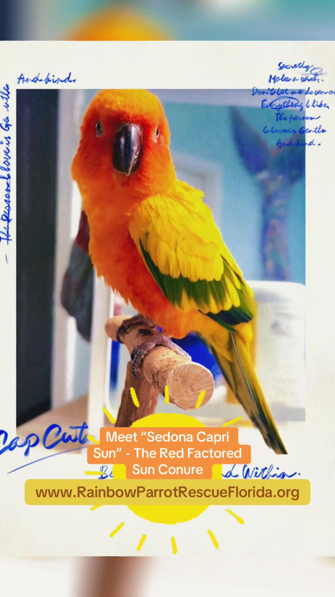 TIKTOK: @rainbowparrotrescueflhttps://www.tiktok.com/@rainbowparrotrescuefl?_t=ZP-8wMRqHWcatC&_r=1